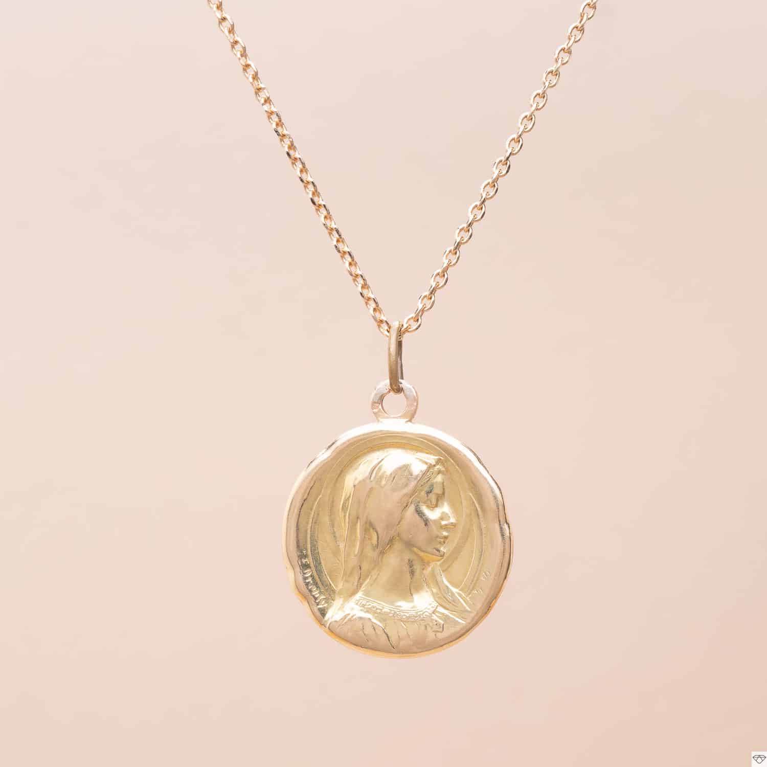 Médaille de la Vierge en or jaune 18K (750°/00) petit anneau en plaqué